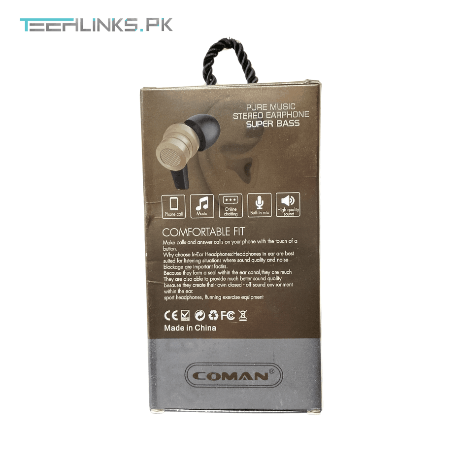 “Discover the premium audio quality of Coman CM57 Earphones. Designed for crystal-clear sound, deep bass, and all-day comfort, these earphones are perfect for music, calls, and gaming.